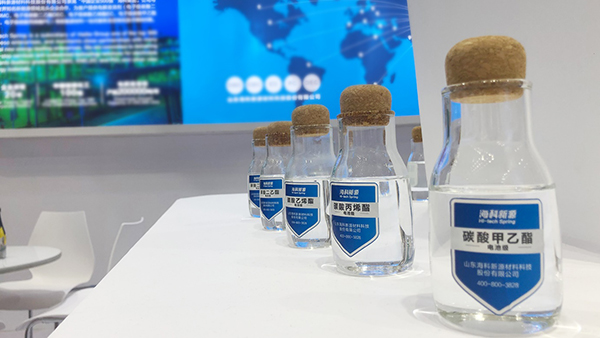 3月19日,山東海科新源材料科技股份有限公司(簡稱:??菩略矗y電池級&電子級碳酸二甲酯/碳酸甲乙酯/碳酸乙烯酯/碳酸丙烯酯/碳酸二乙酯等鋰電池電解液溶劑、碳酸酯混合液及新產品技術定制化解決方案亮相CIBF2021。