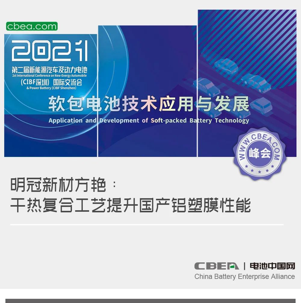 日前,“第二屆新能源汽車及動(dòng)力電池(CIBF2021深圳)國(guó)際交流會(huì)”在深圳舉行,在風(fēng)帆有限責(zé)任公司冠名的“軟包電池核心材料及先進(jìn)技術(shù)突破”專場(chǎng)論壇上,明冠新材料股份有限公司產(chǎn)品經(jīng)理方艷發(fā)表了主題為《國(guó)產(chǎn)鋁塑膜復(fù)合新技術(shù)進(jìn)展及優(yōu)勢(shì)》的演講。