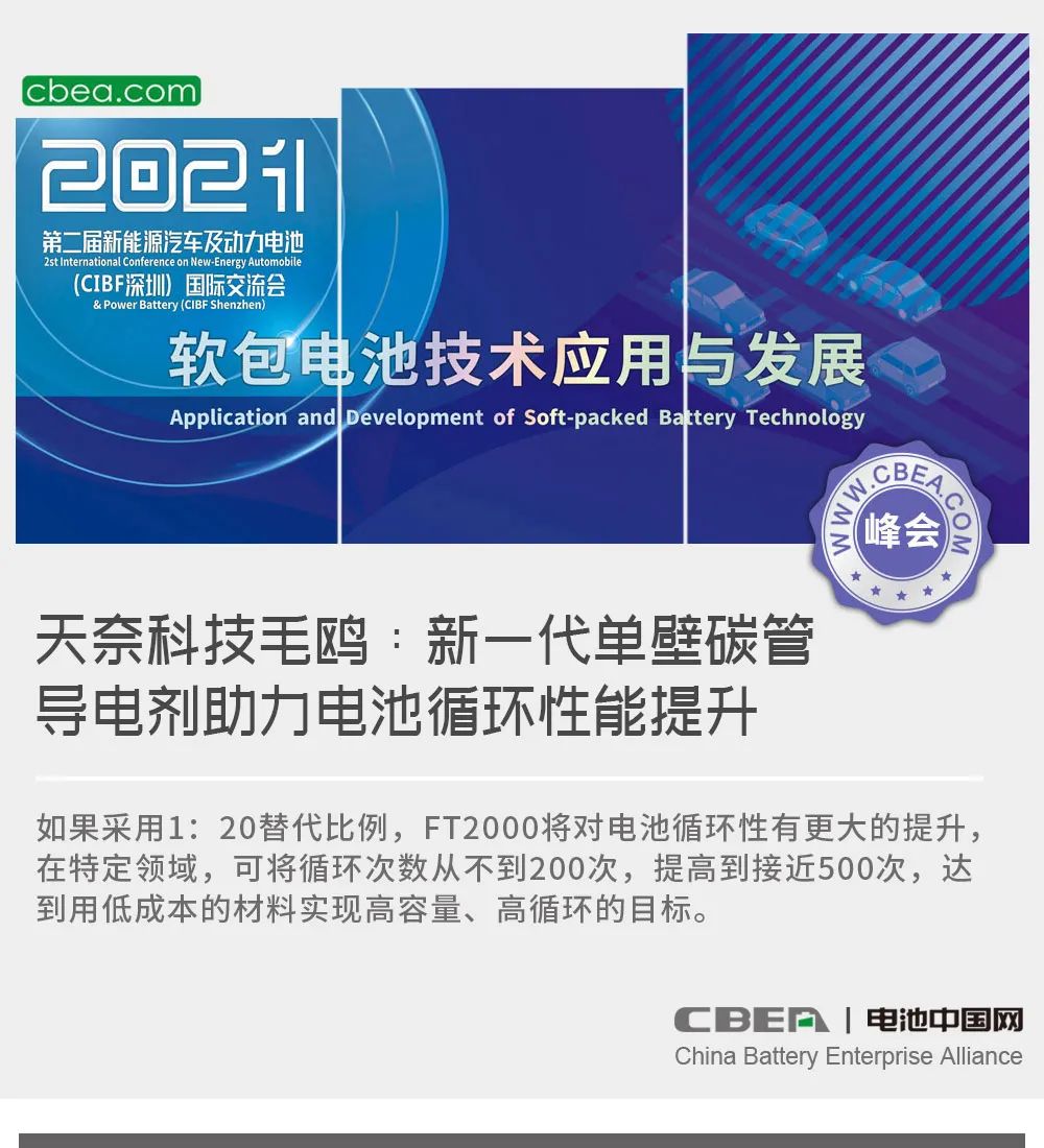 日前,“第二屆新能源汽車(chē)及動(dòng)力電池(CIBF2021深圳)國(guó)際交流會(huì)”在深圳舉行,在風(fēng)帆有限責(zé)任公司冠名的“軟包電池核心材料及先進(jìn)技術(shù)突破”專場(chǎng)論壇上,江蘇天奈科技股份有限公司研發(fā)&知識(shí)產(chǎn)權(quán)總監(jiān)毛鷗博士發(fā)表了主題為“導(dǎo)電劑發(fā)展和新一代單壁碳管導(dǎo)電劑的應(yīng)用”的演講。