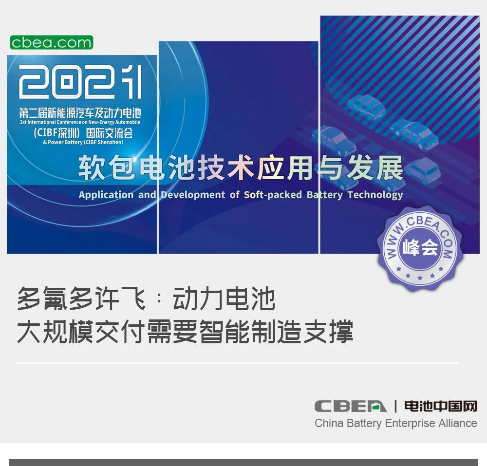 日前,“第二屆新能源汽車及動力電池(CIBF2021深圳)國際交流會”在深圳舉行,在由多氟多冠名的“智能制造助推軟包電池提質降本”專場論壇上,多氟多新能源科技有限公司總經理許飛發表了主題為“多氟多動力電池智能制造新進展”的演講。