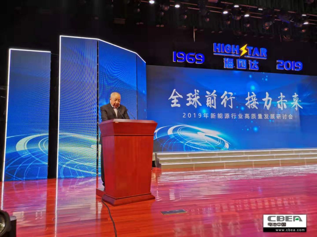 吳鋒院士在主旨發言中表示,2019年的諾貝爾化學獎,頒發給了全球3位對鋰離子電池發展做出重大貢獻的科學家,說明二次電源領域正在受到越來越多的重視和認可。從當初轉行進入電池領域,到現在不斷推動和改進電池性能,研發新產品,推動二次電池技術發展,海四達人創造了一個又一個奇跡。海四達人不畏艱辛,迎難而上,克服各種困難,在從鎳鎘電池到鎳氫電池再到鋰離子電池的路上,不斷向前。圖為中國化學與物理電源行業協會秘書長劉彥龍作主旨發言