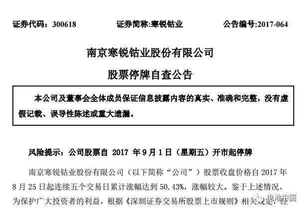 9月1日,寒銳鈷業因連日漲停終致停牌!