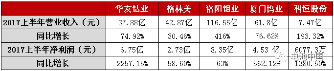 翻一下2017年上半年企業財報,你會發現做鈷生意的企業,似乎活得都很滋潤,除了寒銳鈷業之外,華友鈷業、格林美、洛陽鉬業、廈門鎢業和科恒實業莫不如此。