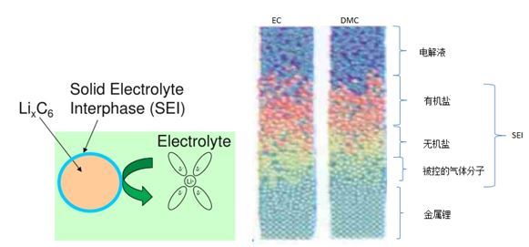 SEI膜,全稱solid electrolyte interface,固體電解質(zhì)界面(膜),顧名思義,他就是具有固體電解質(zhì)性質(zhì)的鈍化膜層。SEI是Li+的優(yōu)良導(dǎo)體,能夠讓鋰離子在其中進行傳輸,進入到石墨表面,進行脫嵌鋰工作。同時又是良好的電子絕緣體,能夠有效的降低內(nèi)部的短路概率,改善自放電。更為重要的是,這玩意兒能有效效防止溶劑分子的共嵌入,避免了因溶劑分子共嵌入對電極材料造成的破壞, 因而大大提高了電極的循環(huán)性能和使用壽命。