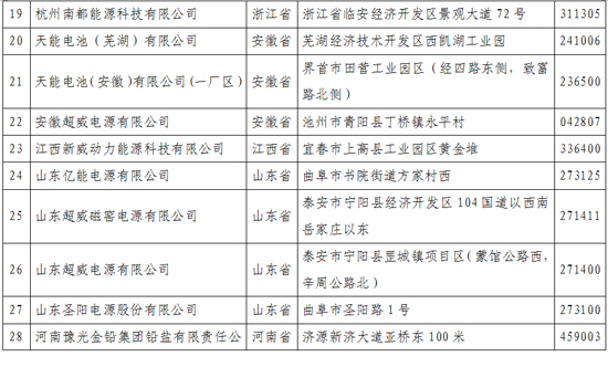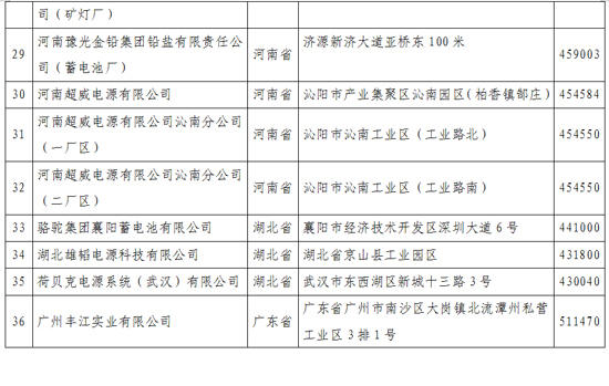 《鉛蓄電池行業(yè)規(guī)范條件》企業(yè)名單(第一批)