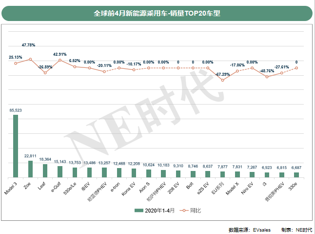根據NE時代整理的工信部產量數據,LG化學在中國只有特斯拉一家客戶的時候,前4個月裝機量740.8MWh,相當于其全球裝機量的11.2%。三星SDI的增長歸功于大眾e- Golf、寶馬330e和帕薩特GTE的強勁銷量。大眾和寶馬出現在全球TOP20的車型是e-Golf和帕薩特PHEV,530e/Le、i3和330e。其中前三款車型在歐洲和中國市場的新能源汽車市場內或位居TOP10,或銷量出現較大的提升。現代Porter II Electric、Soul Booster和起亞BongoⅢEV推動SKI的增長。
