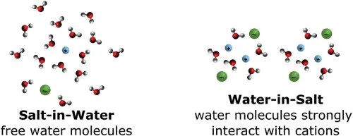 研究人員表示:“水溶鹽電解液指的是極少量的水加高濃度的鹽組成的溶液,水的量剛好能夠溶解離子,促成溶劑的形成。與傳統(tǒng)解決方案不同,該系統(tǒng)不含游離水。”此外,只有由一個(gè)大的陰離子與一個(gè)小的陽離子組成的鹽分子才可被溶解。例如,雙三氟甲烷磺酰亞胺鋰(CF3SO2NLiSO2CF3)、氯化鈉或食鹽都沒有用,因?yàn)樗鼈兊年栯x子和陰離子大小相似。