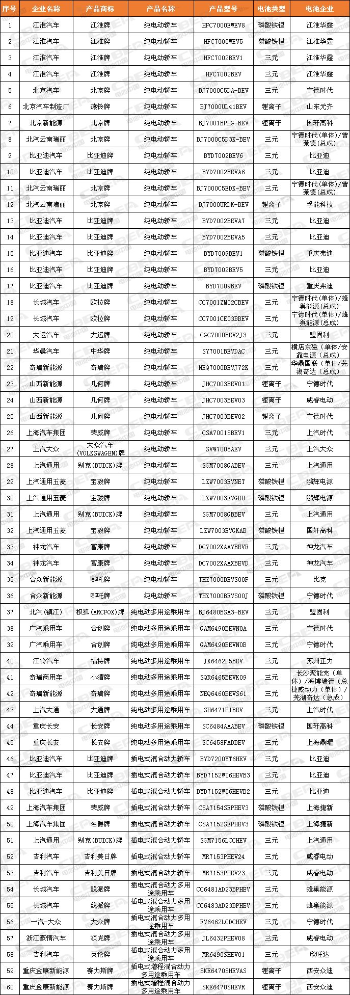 2020年1月15日,國家工信部在其官方網(wǎng)站發(fā)布了《道路機動車輛生產(chǎn)企業(yè)及產(chǎn)品公告》(第328批)的車輛新產(chǎn)品公示。本批新車公示中,申報新能源汽車產(chǎn)品的共222款車型,其中新能源乘用車和新能源客車產(chǎn)品數(shù)量相同,各有60款;新能源專用車產(chǎn)品有102款。動力電池應用分會研究部對其中的新能源乘用車及其配套動力電池情況進行了梳理,詳情如下:從申報車型品牌看,本次申報的60款新能源乘用車車型來自28個品牌。其中,比亞迪牌申報車型數(shù)量最多,達10款;其次是北京牌,申報5款;江淮汽車排名第三,申報4款。另外,查閱以往數(shù)據(jù)發(fā)現(xiàn),本次申報的品牌中合創(chuàng)牌、極狐(ARCFOX)牌、小猬牌、英倫牌等4個品牌是首次申報公告。其中,合創(chuàng)牌車型有2款,分別是GAM6490BEVN0A和GAM6490BEVN0B純電動多用途乘用車,搭載寧德時代的三元電池。其他3個品牌各自申報1款車型,分別是極狐(ARCFOX)牌BJ6480BSA3-BEV純電動多用途乘用車,搭載盟固利的三元電池;小猬牌SQR6465BEVK09純電動多用途乘用車,搭載三元電池的電芯企業(yè)為長沙聚能充,電池系統(tǒng)企業(yè)為海博瑞德;英倫牌MR6490SHEV01插電式混合動力多用途乘用車,搭載欣旺達的三元電池。數(shù)據(jù)來源:動力電池應用分會研究部從電池技術路線看,三元電池仍是主流,有41款,占比68.3%;磷酸鐵鋰電池有11款,未注明類別鋰離子電池有8款。從配套動力電池企業(yè)看,本次共有29家(含組合)動力電池企業(yè)為60款新能源乘用車車型提供配套。其中,配套車型數(shù)量排名靠前的電池企業(yè)為寧德時代配套11款、比亞迪配套8款、蜂巢能源/江淮華霆/威睿電動各自配套4款,其他企業(yè)配套數(shù)量均在3款及以下。數(shù)據(jù)來源:動力電池應用分會研究部值得一提的是,本次配套電池企業(yè)中同樣出現(xiàn)了新面孔--重慶弗迪鋰電池有限公司(簡稱重慶弗迪),據(jù)悉,重慶弗迪為比亞迪旗下子公司,此次為比亞迪牌BYD7009BEV和BYD7009BEV1純電動轎車配套的2款磷酸鐵鋰電池是其開發(fā)的新一代磷酸鐵鋰電池——即被業(yè)界所關注的“刀片電池”,可使新車續(xù)航達500-600km,媲美目前多數(shù)的三元乘用車。以下為第328批新車公示中新能源乘用車車型動力電池配套情況:數(shù)據(jù)來源:動力電池應用分會研究部