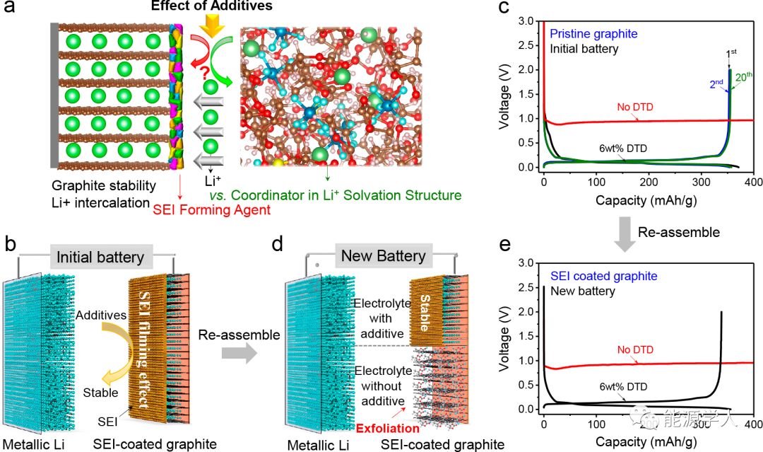 圖1. 添加劑對(duì)石墨中Li+脫嵌的影響。