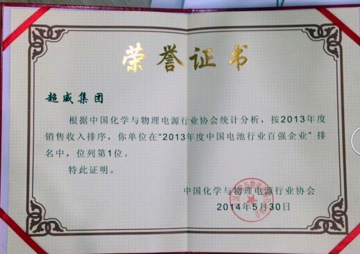 超威集團榮登2013年中國電池行業百強企業榜首