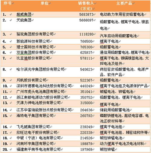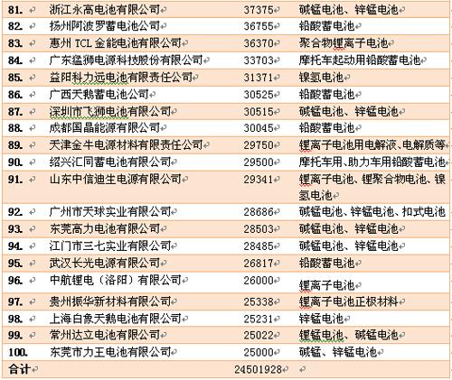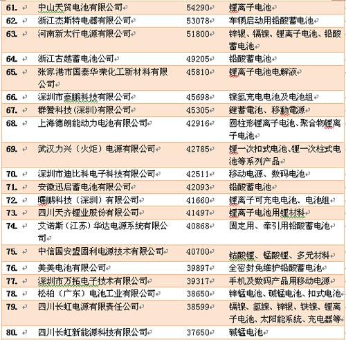 2013年度中國(guó)電池行業(yè)百?gòu)?qiáng)企業(yè)名單