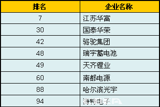 2013年度中國輕工業百強企業名單(電池企業共7家)