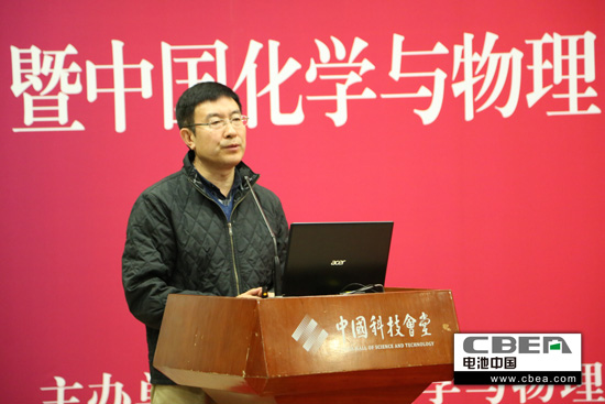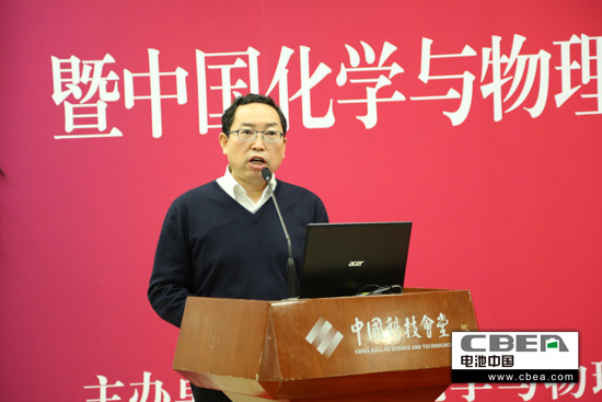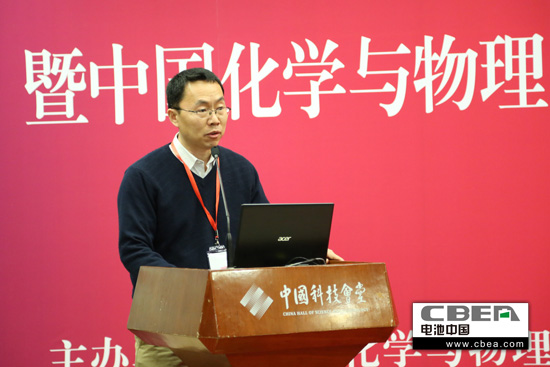 圖為中國科學(xué)院物理所國家實驗室副主任、研究院李泓做主題演講