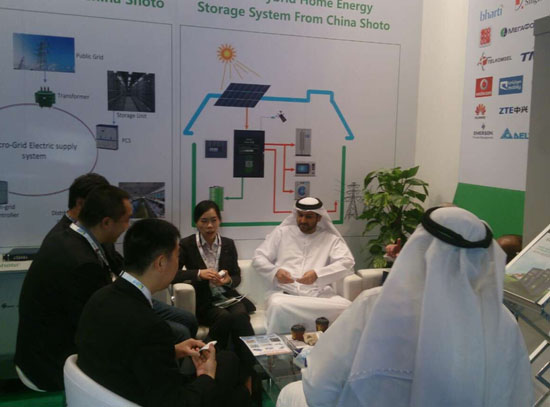 展會期間,迪拜官方水電總局、迪拜警局的工程師也到訪雙登集團展位,與工作人員就蓄電池、通信電池備電系統、太陽能儲能系統的技術問題進行了深度交流。