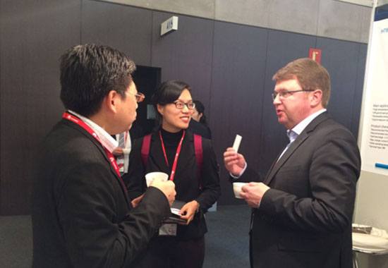 雙登集團(tuán)工作人員與國際客戶交流