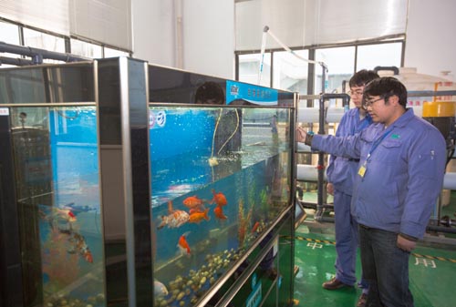 對于工業(yè)廢水,超威動力使用“多級回調(diào)pH+斜板沉淀+反滲透”模式進行處理。處理后的廢水達到甚至優(yōu)于工業(yè)回用水水質(zhì)標準,并將大部分廢水回收再利用于生產(chǎn)環(huán)節(jié)。尤其值得一提的是,山東超威、超威郎山等分公司將回用水用于景觀魚類飼養(yǎng),既監(jiān)控了回用水的水質(zhì),又為廠區(qū)增添了生機。