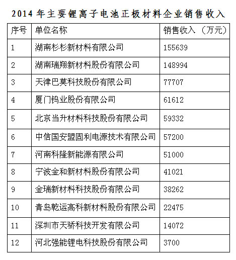 近日,中國(guó)化學(xué)與物理電源行業(yè)協(xié)會(huì)發(fā)布2014年度我國(guó)鋰離子電池四大主要材料企業(yè)排名情況。