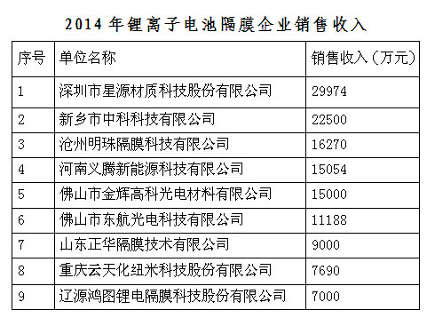 9家鋰離子電池隔膜企業(yè)去年全年實(shí)現(xiàn)銷售收入13.36億元,總產(chǎn)量達(dá)3.09億平方米,約占全國(guó)總需求量的65%。