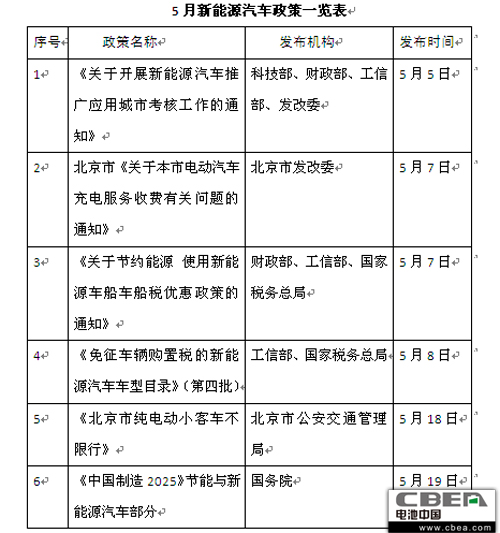 縱觀之,5月份,我國新能源汽車市場迎來了較大力度的推廣措施,從財政補貼到行政扶持,再到產業延伸拓展,新能源汽車已然成為時代的寵兒。