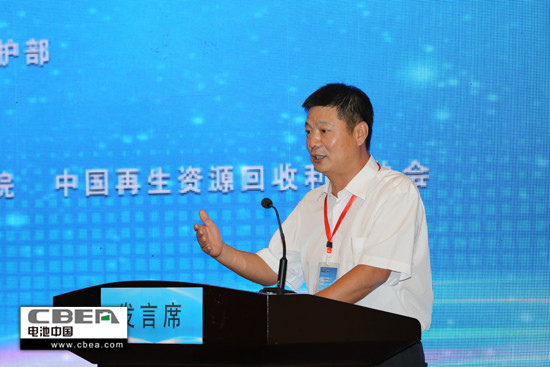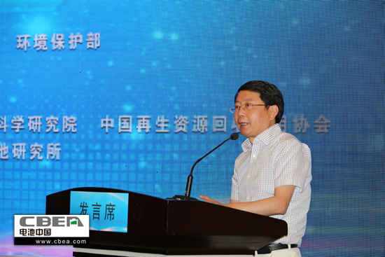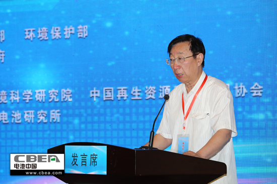 中國電池工業協會理事長韓作樑在成立儀式上致辭