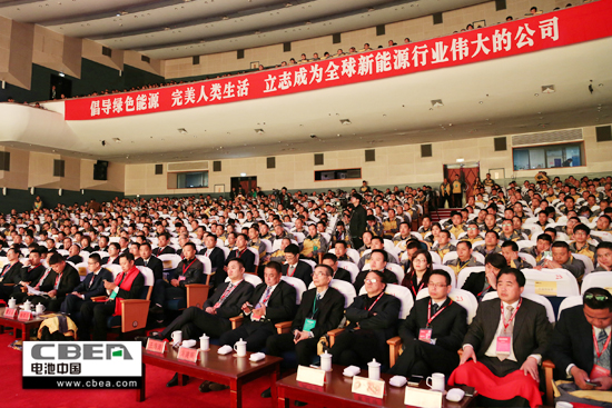 圖為“超威電池2016全國(guó)聯(lián)營(yíng)商峰會(huì)”會(huì)議現(xiàn)場(chǎng)