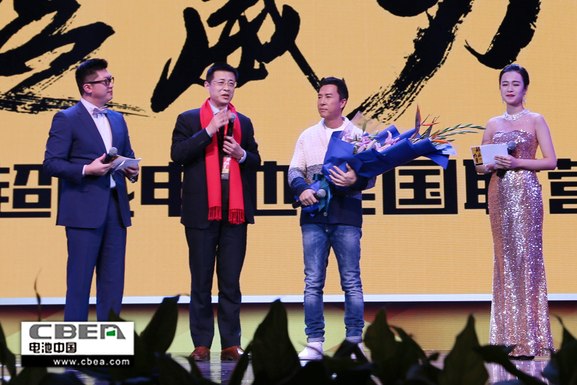 圖為超威品牌形象代言人、國(guó)際功夫巨星甄子丹(左3)親臨現(xiàn)場(chǎng)