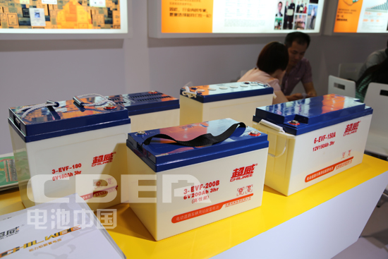 超威展臺上展示的電動車用蓄電池產品