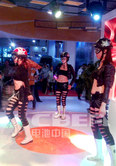 超威集團展臺前歌舞表演吸引觀眾駐足