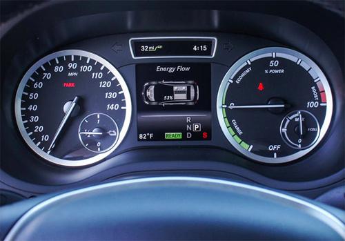 奔馳B級電動汽車的中心液晶顯示屏上不顯示任何充電相關的信息,而是顯示在儀表盤上,取代了電表和轉速表。在產品發布會上,梅賽德斯 – 奔馳電動汽車的Smart品牌經理Mark Webster表示,擁有該款汽車的車主會得到一個網絡賬號,讓他們能夠使用電腦、平板或者智能手機遠程充電和控制汽車溫度。