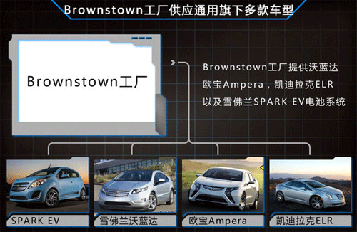 通用的Brownstown工廠目前為雪佛蘭沃藍達、歐寶Ampera、凱迪拉克ELR在內的多款車型提供電池組。隨著通用宣布將自產新款SPARK EV所需的新型電池組后,其也將在該工廠內增加電池生產線,使全新車型性能提升的同時,通過自產電動車型主要配件的方式進一步節約生產成本。