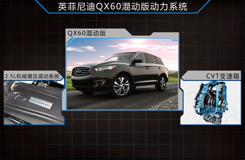 與樓蘭混動版相類似,英菲尼迪QX60混動版動力方面也采用的是最新研發(fā)的2.5升機械增壓混動系統(tǒng),該系統(tǒng)由一臺2.5L機械增壓引擎和一臺電動機組成,最大聯(lián)合功率達到184kw,其中電動機的最大功率為15kw,與之匹配的是CVT變速箱。該混動系統(tǒng)的動力輸出盡管與英菲尼迪目前主要采用的3.5L發(fā)動機有一定距離,但保持了良好的燃油經(jīng)濟性,并且在智能制動能量回收系統(tǒng)的幫助下,燃油經(jīng)濟性進一步加強。