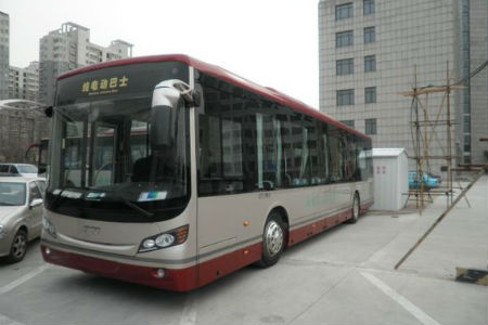 在武清汽車產業園天津比亞迪汽車有限公司廠區內,公交車司機崔志海師傅正在嘗試著操作剛剛下線的“金馬”牌純電動公交車。即使在時速40公里的狀態下,坐在十多米寬,近三米長的車廂里,也聽不到一點機器運行發出的噪音。和幾個月前投入使用的無障礙公交車一樣,新能源公交車車身具有向右側傾斜的側跪功能,后門處還設計了翻轉坡道及輪椅區。試車結束,崔師傅對新車贊不絕口,“這個是電動的,節能減排。也不用掛檔了,還挺輕松。一鍵啟動,無障礙上車啊,人性化,速度也行,滿載爬坡跑40多,平時能跑60到70吧……”。