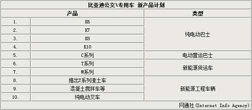 有調(diào)查結(jié)果顯示以節(jié)能、環(huán)保政策為大背景,國內(nèi)外各大城市都已出現(xiàn)新能源公共交通和專用車輛的供應(yīng)缺口。現(xiàn)階段,比亞迪新能源車型主要集中在E6出租車、K9電動(dòng)大巴和必比亞迪秦雙模混動(dòng)車型領(lǐng)域,根據(jù)比亞迪的戰(zhàn)略規(guī)劃,未來新能源車將集中在下列十大領(lǐng)域發(fā)力:城市公交、出租車、城際營運(yùn)、電商物流、城市建筑物流、城市環(huán)衛(wèi)、私家車、倉儲(chǔ)物流,以及礦山、碼頭(港口)、機(jī)場等工程車輛。