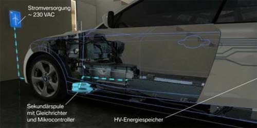 該無線感應充電系統由兩個部分組成,安裝在車庫或者停車場地面下主線圈和安裝在車輛地盤下的次線圈。當兩個線圈能夠進行自我感應,當兩個線圈靠近的時候就會自動進行對接,主線圈的輸出達到3.6kW,大部分電動汽車能夠在三小時能夠完成充電。在測試中寶馬稱寶馬i8完整充電不到兩個小時就能充滿90%以上的電量,公司目前正在對線圈等進行進一步改造,使其輸出達到7kW,未來可用于寶馬i3。