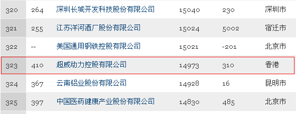超威動力登榜財富中國500強第323名 數據來源:財富中文網