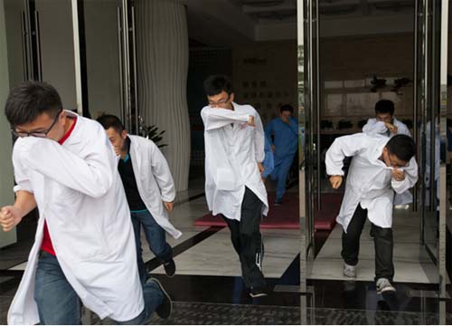超威集團(tuán)開(kāi)展消防安全應(yīng)急演習(xí),科技中心技術(shù)人員撤離火災(zāi)演習(xí)現(xiàn)場(chǎng)