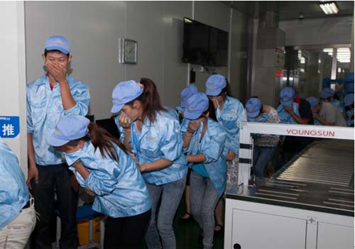 演習(xí)中,300余名超威員工根據(jù)所掌握的逃生技巧,捂鼻彎腰前行,分別從四個(gè)安全出口撤離到指定地點(diǎn),整個(gè)過(guò)程反應(yīng)迅速,井然有序。隨著兩名救護(hù)人員將一名傷員搶救出火場(chǎng)后,演習(xí)畫(huà)上了圓滿(mǎn)的句號(hào)。
