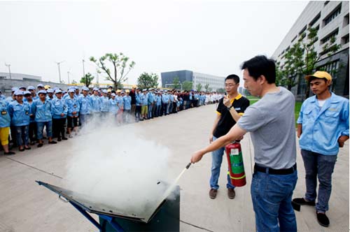 超威創(chuàng)元公司安全管理人員正在演示滅火裝置使用技巧