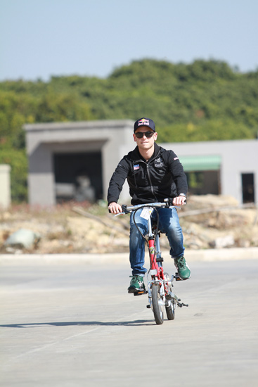桑德羅試騎猛獅科技“一秒鐘折疊”電動自行車