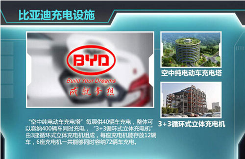 比亞迪在大力推廣新能源汽車的同時,充電設施的不完善的問題就凸顯出來了,現比亞迪對于充電配套的建設也已全面鋪開。日前,網通社從比亞迪官方獲悉:為解決充電問題,比亞迪現已推出“空中純電動車充電塔”與“3+3循環式立體充電機” 等電動車充電解決方案。
