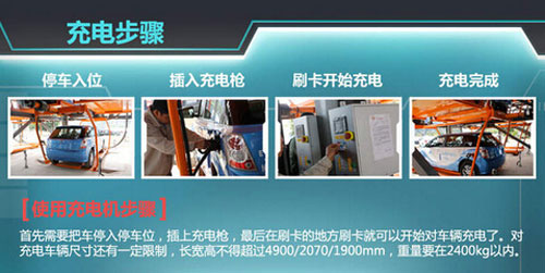 首先需要把車停入停車位,插上充電槍,最后在刷卡的地方刷卡就可以開始對車輛充電了。對充電車輛尺寸還有一定限制,長寬高不得超過4900/2070/1900mm,重量要在2400kg以內。