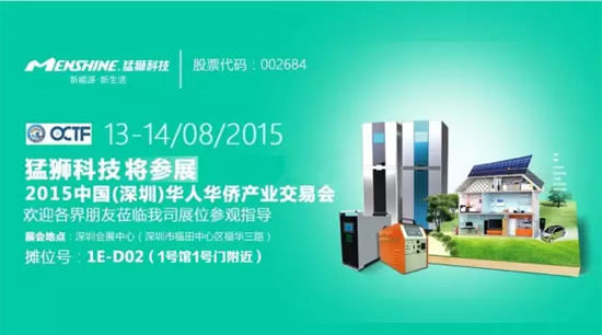 猛獅科技將于8月13日-14日在深圳會展中心參展2015中國(深圳)華人華僑產業交易會,將展出光伏系統、儲能系統等新能源產品。