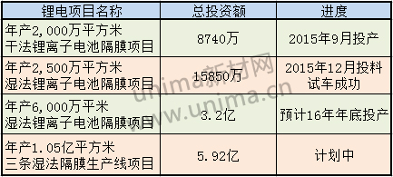 重慶云天化紐米科技有限公司成立于2010年2月,位于重慶長壽經(jīng)濟技術(shù)開發(fā)區(qū)。2015年隔膜銷售額為1.5億元,毛利率為25%。