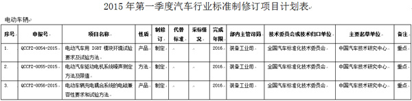 1月19日,工信部公開征集對《電動汽車用IGBT模塊環境試驗要求及試驗方法》等233項行業標準、10項國家標準計劃項目的意見。其中電動汽車行業標準計劃項目共有三項,分別為《電動汽車用IGBT模塊環境試驗要求及試驗方法》、《電動汽車驅動電機系統噪聲測定方法及限值》、《電動車輛充電耦合系統的電磁兼容性要求和試驗方法》。