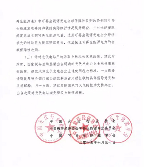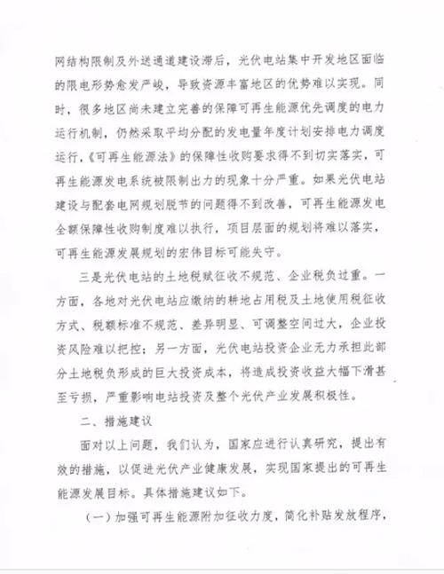 《關于“十三五”期間支持光伏產業健康發展的建議》