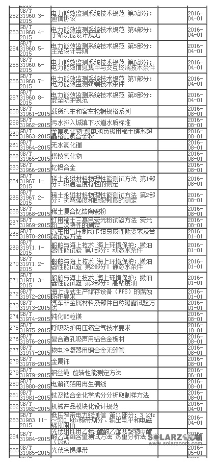 [摘要]9月11日,從國家標準委網站獲悉,《中華人民共和國國家標準公告》(2015年第25號)發布,由中國電科院牽頭編制的國家標準GB/T 31999-2015《光伏發電系統接入配電網特性評價技術規范》獲批發布,并將于2016年4月1日正式實施。