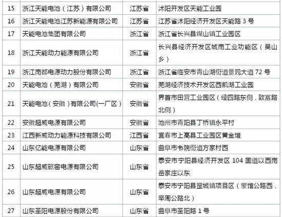 附件:符合《鉛蓄電池行業規范條件(2015年本)》企業名單(第一批)