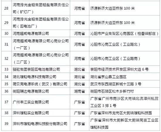 為推動我國鉛蓄電池行業可持續發展,依據《鉛蓄電池行業規范條件(2015年本)》及《鉛蓄電池行業規范公告管理辦法(2015年本)》,工業和信息化部開展鉛蓄電池行業規范管理工作。經企業申請、省級工業和信息化主管部門初審、專家審核、工業和信息化部復核以及網上公示等程序,39家企業列入《符合<鉛蓄電池行業規范條件(2015年本)>企業名單(第一批)》,現予以公告。