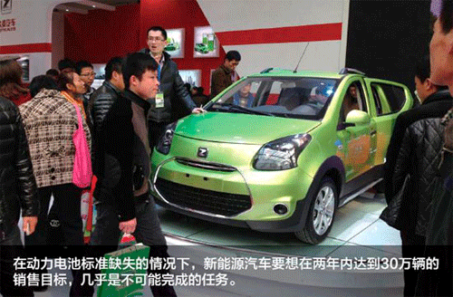 在動力電池標準缺失的情況下,新能源汽車要想在兩年內達到30萬輛的銷售目標,幾乎是不可能完成的任務。
