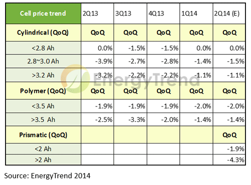 ▲電池芯報價變化(圖片來源:EnergyTrend)
